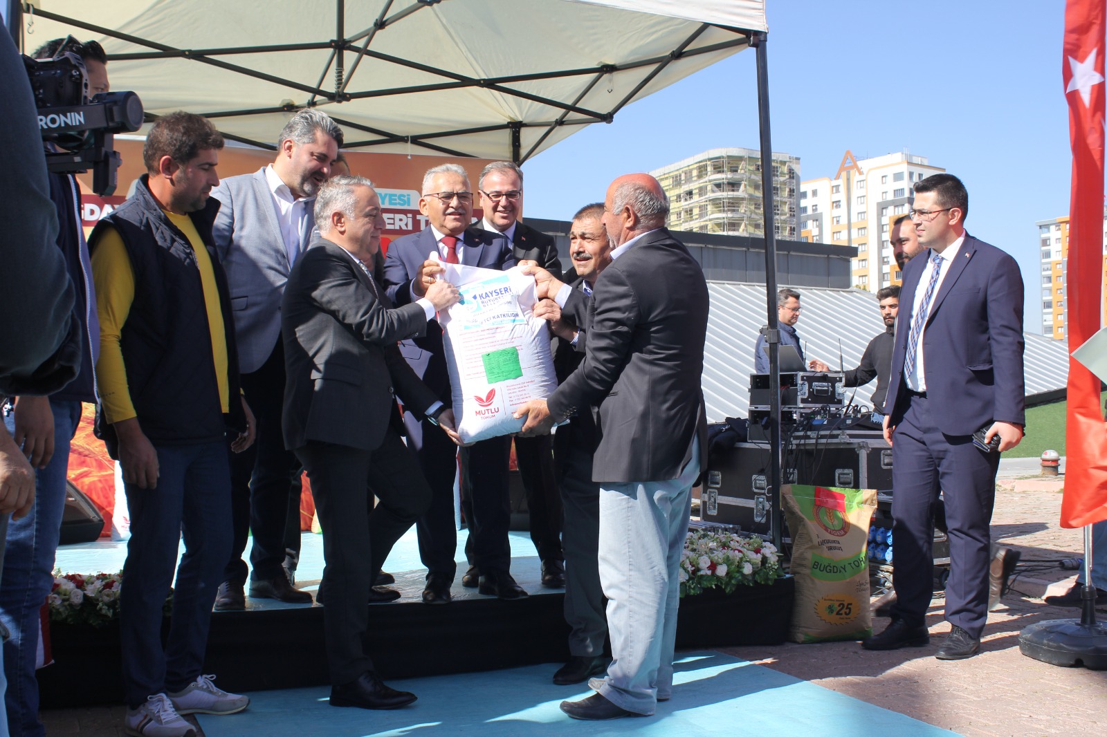 Kadir Has Kongre Merkezi bahçesi Kayseri Büyükşehir Belediyesi tarafından buğday tohumu ve yem bitkileri tohumu dağıtım töreni yapıldı. Kayseri Büyükşehir Belediyesi tarafından buğday tohumu ve yem bi...